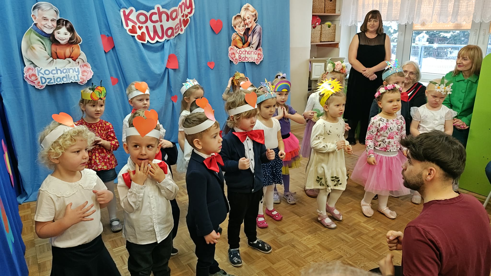 Przedszkolaki z obydwu grup przedszkolnych nie zapomniały o Dniu Babci i Dziadka i zaprosiły swoich Dziadków na okolicznościowy montaż słowno- muzyczny. Radość i wzruszenie, które malowały się na twarzach Seniorów świadczyły, że popisy artystyczne dzieci bardzo się podobały.
