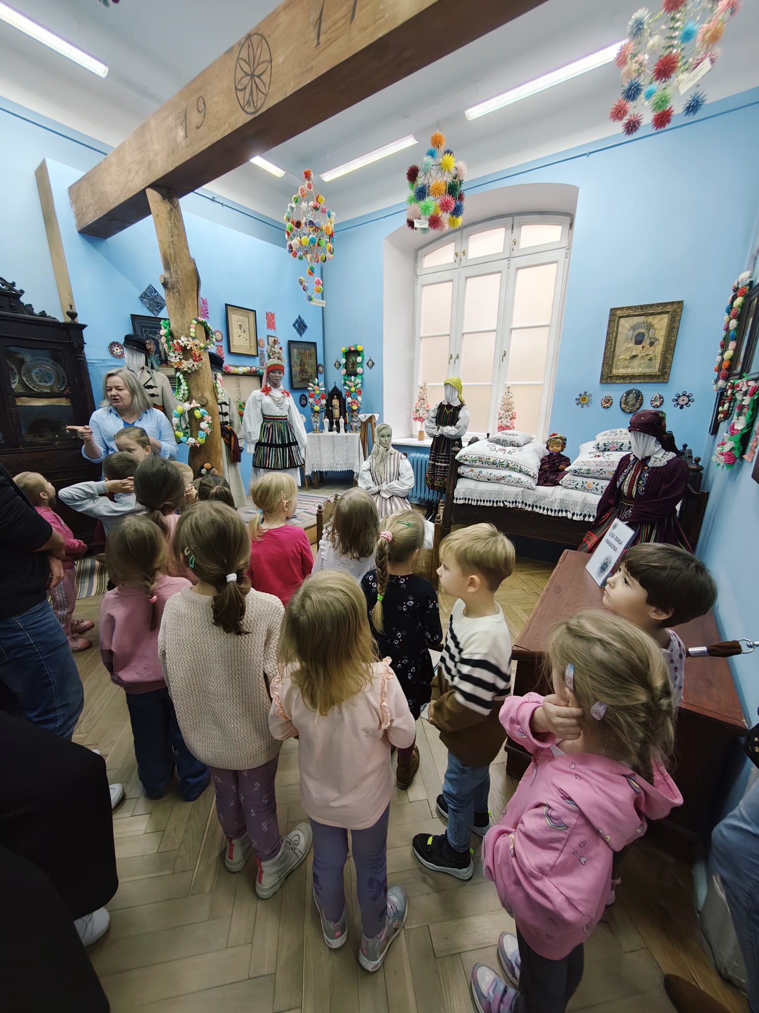 Podczas zajęć dzieci dowiedziały się, czym jest muzeum i dlaczego jest tak ważne. Przedszkolaki miały okazję obejrzeć różne eksponaty, poznać ich historię oraz porozmawiać o tym, jak należy zachowywać się w takim miejscu.