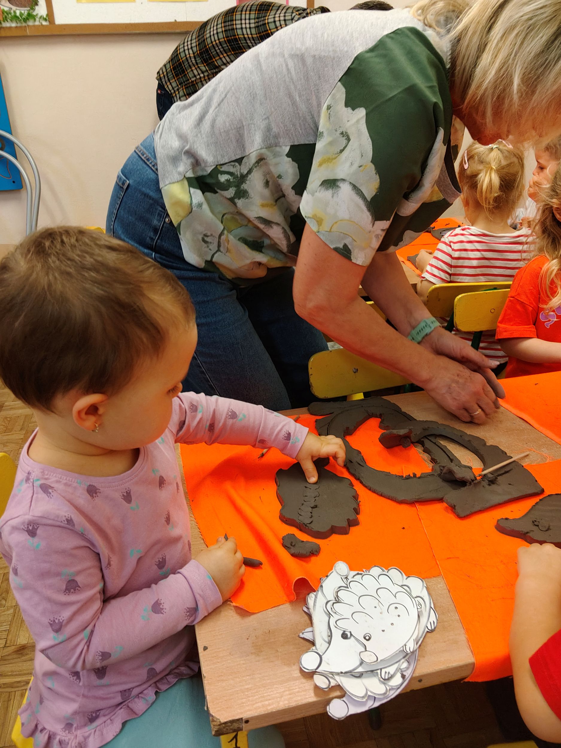 Na początku listopada w grupie 3-, 4-latków odbyły się zajęcia ceramiczne, które poprowadziła pani Bożena Gajda z Miejskiego Centrum Kultury. Dzieci na zajęciach poznały właściwości gliny i tworzyły jeżyka. Poprzez zajęcia przedszkolaki rozwijały między innymi kreatywność i motorykę małą.